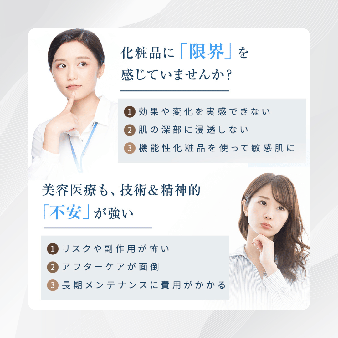 放っておけば、肌のハリは年々失われ、輪郭はぼやけ、見た目年齢はさらに上がってしまいます。