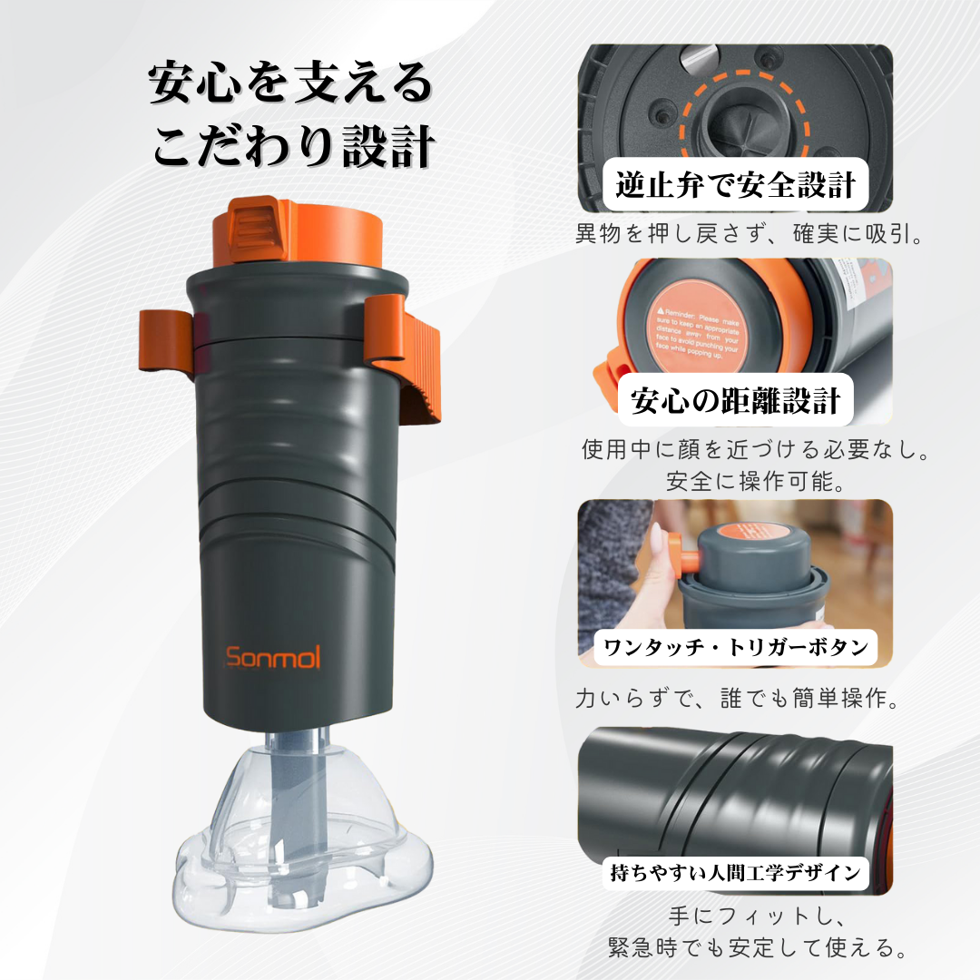 A. はい、SuffirGuardPRO™は**医療用シリコンマスク**を使用し、医療機関でも使われるような高い品質を誇ります。また、**33kPaの吸引力**や**双方向逆流防止バルブ**など、安全性を最優先にした設計で、家庭でも同等の信頼性を提供します。